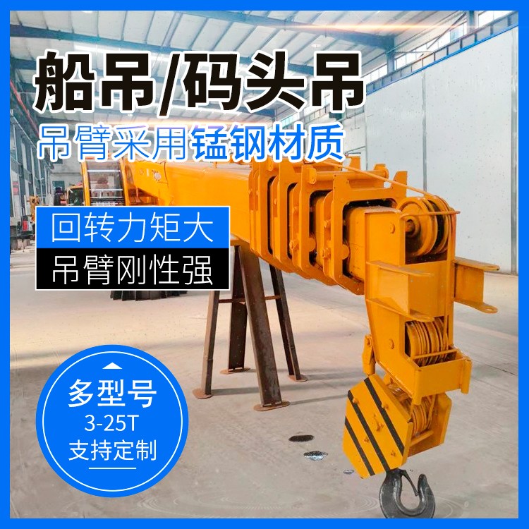 船用吊機(jī)采用國內(nèi)知名吊機(jī)及液壓泵系統(tǒng),可根據(jù)用戶需求選用不同長度、噸位的吊機(jī)。吊裝能力強(qiáng),起升高度高,作業(yè)范圍大??蓪?shí)現(xiàn)快速升降,節(jié)能;具有機(jī)動靈活、方便、安全可靠等優(yōu)點(diǎn)。今天船吊廠家來為您介紹一下船用吊機(jī)的主要功能及產(chǎn)品參數(shù):